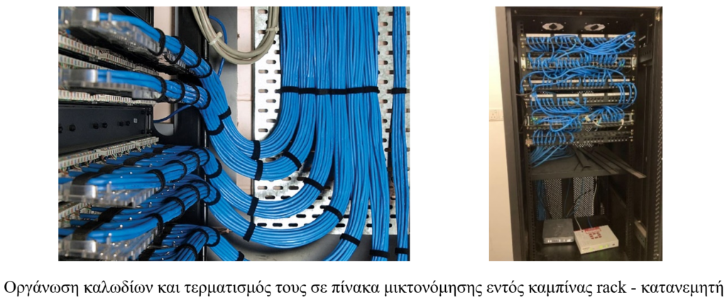 - Πίνακες μικτονόμησης (patch panels) για την οργάνωση των καλωδίων.