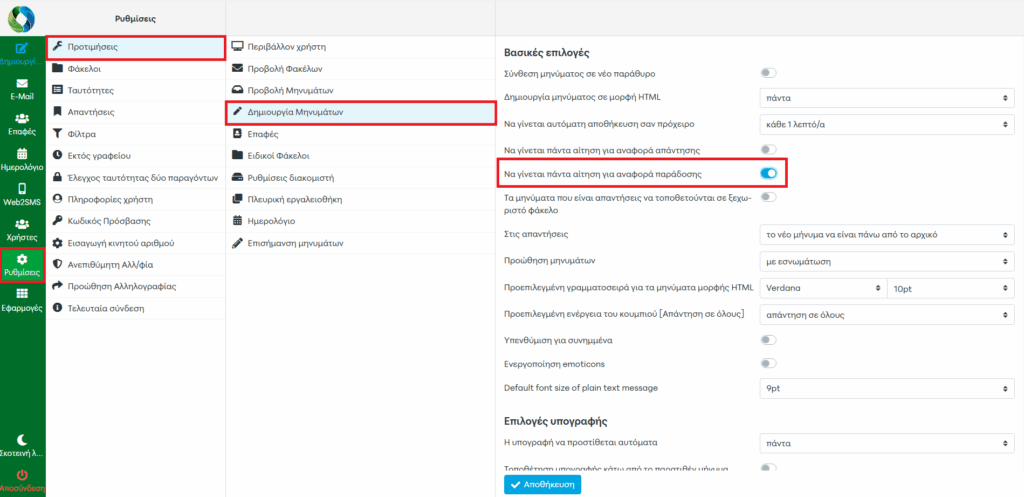 Ενεργοποιήστε «Να γίνεται πάντα αίτηση για αναφορά παράδοσης».