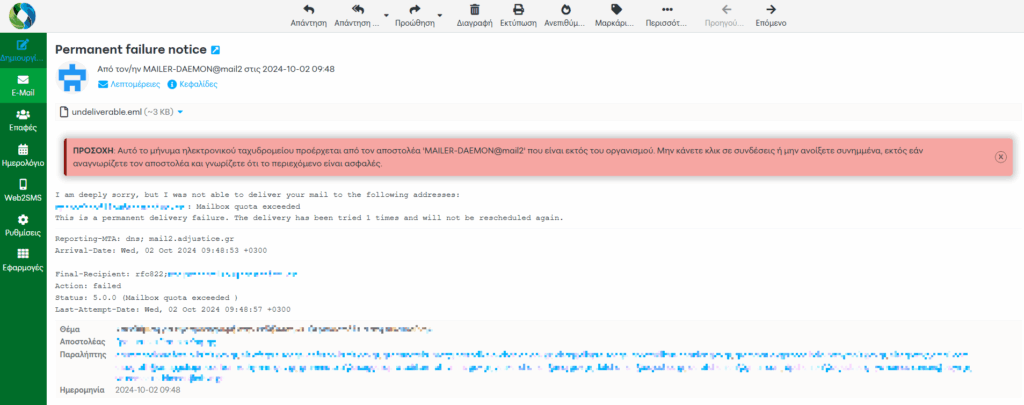 🧭 1. Ελέγξτε το μήνυμα ειδοποίησης (Mail Delivery Failure)