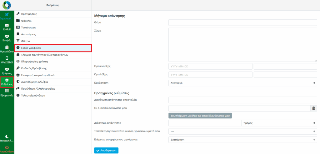 - Βρείτε την επιλογή «Εκτός γραφείου» (Out of Office).