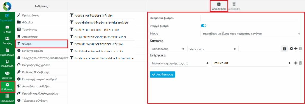 - Επιλέξτε την ενέργεια που θέλετε να εκτελείται (π.χ. «Μεταφορά μηνύματος στο φάκελο ΕΣΔΙ»).