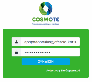 - Πληκτρολογήστε τη διεύθυνση του υπηρεσιακού σας email (π.χ. dpapadopoulos@efeteio-kritis.gov.gr)